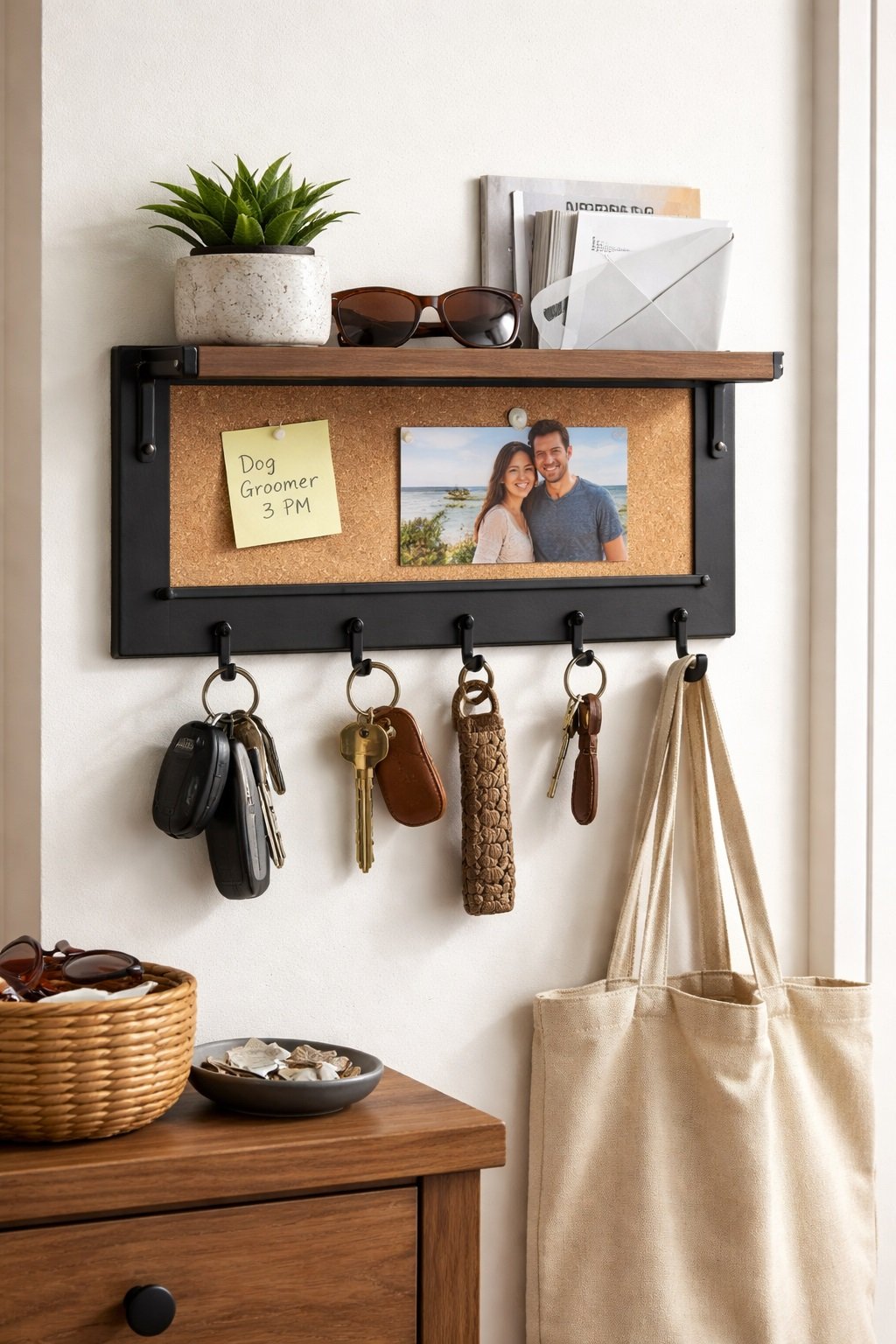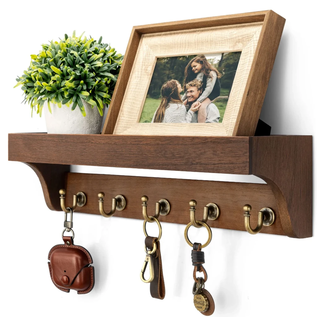 Wall-mounted key holders are especially useful in small entryways because they keep surfaces clear while still keeping essentials visible and within reach.