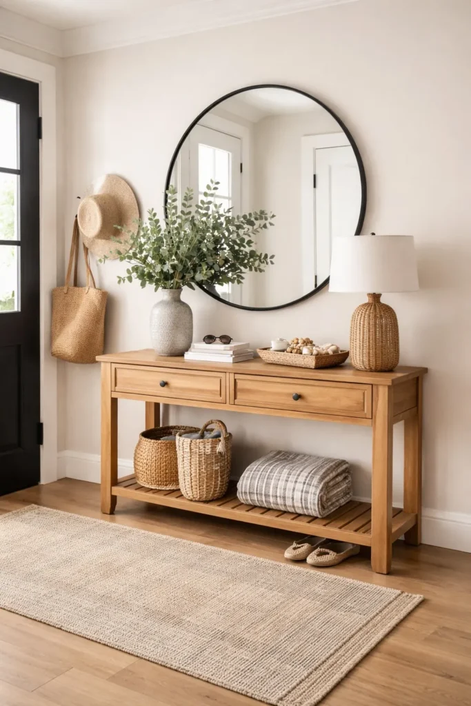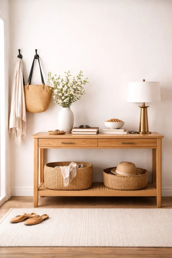 An entryway table creates a defined place for everyday items without taking up too much room. Slim designs work best, offering function without blocking movement.