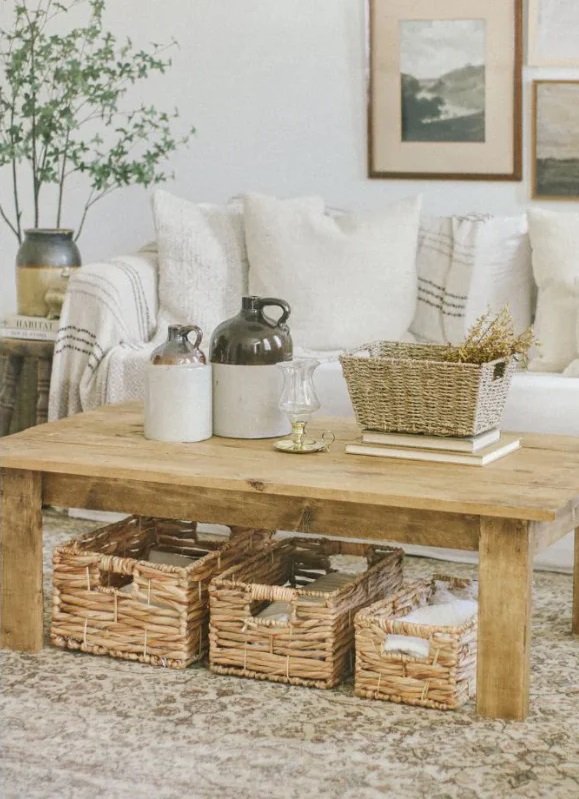 Storage baskets group items together, creating a cleaner look while keeping things easy to access.