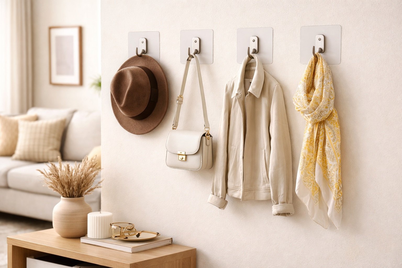 A versatile, damage-free option for hanging everyday items like keys, bags, or accessories. Great for entryways, closets, or small wall spaces.